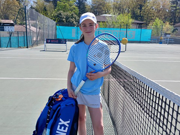 Je suis passionnée de tennis. Je joue depuis l’âge de 5 ans. Je suis actuellement classé 5/6 à 11 ans. Je vis à Frontenas dans le Beaujolais des Pierres dorées. Je m'entraîne à Bron dans le Rhône à la ligue Auvergne-Rhône-Alpes de Tennis et dans mon club à Charbonnières-Les-Bains.